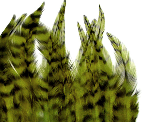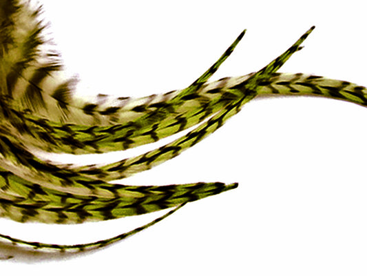 1 Dozen - Medium Olive Green Grizzly Rooster Saddle Whiting Hair Extension Feathers