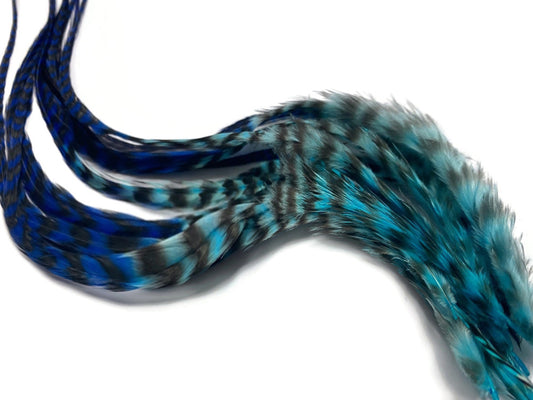 1 Dozen - Medium Bluemoon Grizzly Blendz Rooster Saddle Whiting Hair Extension Feathers