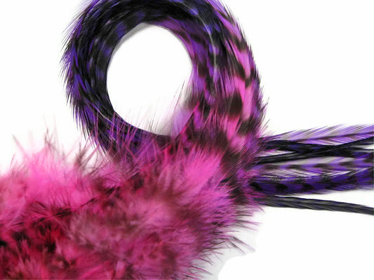 1 Dozen - Medium Raspberry Blendz Rooster Saddle Whiting Hair Extension Feathers