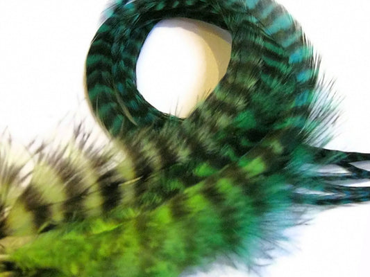 1 Dozen - Medium Mermaid Blendz Grizzly Rooster Saddle Whiting Hair Extension Feathers