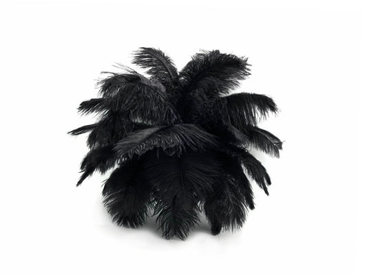 10 Pieces - 14-17" Black Ostrich Dyed Drab Body Feathers
