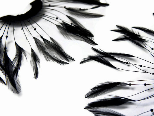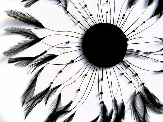 1 Piece - Black Whole Beaded Pinwheel Stripped Rooster Hackle Feather Plates