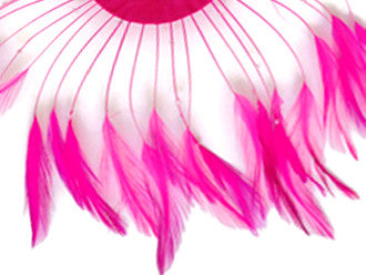 1 Piece - Hot Pink Half Beaded Pinwheel Stripped Rooster Hackle Feather Pads