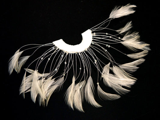 1 Piece - Ivory Whole Beaded Pinwheel Stripped Rooster Hackle Feather Plates