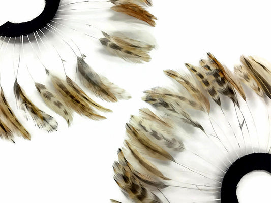1 Piece - Golden Badger Half Beaded Pinwheel Stripped Rooster Hackle Feather Pads