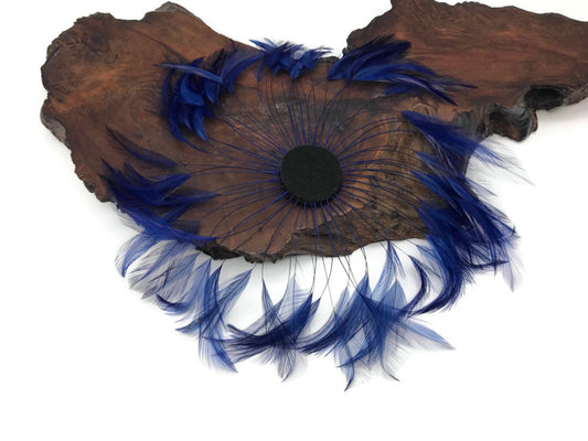 1 Piece - Navy Blue Whole Beaded Pinwheel Stripped Rooster Hackle Feather Plates
