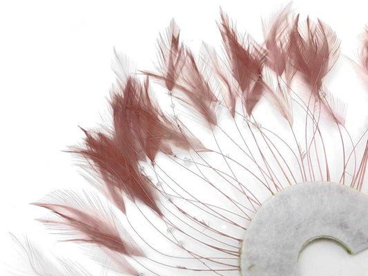 1 Piece - Taupe Half Beaded Pinwheel Stripped Rooster Hackle Feather Pads