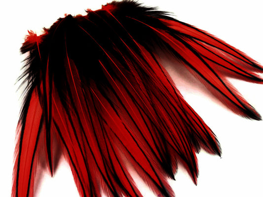 1 Dozen - Red Stripped Rooster Coque Tail Feathers