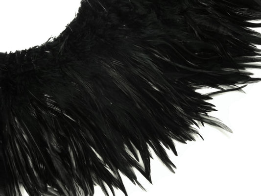 1 Yard - Black Strung Rooster Neck Hackle Wholesale Feathers (Bulk)