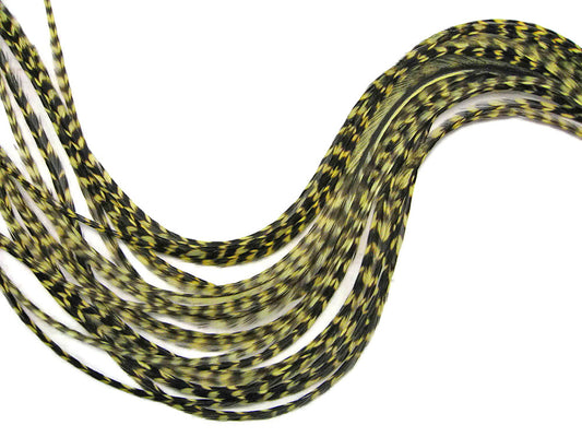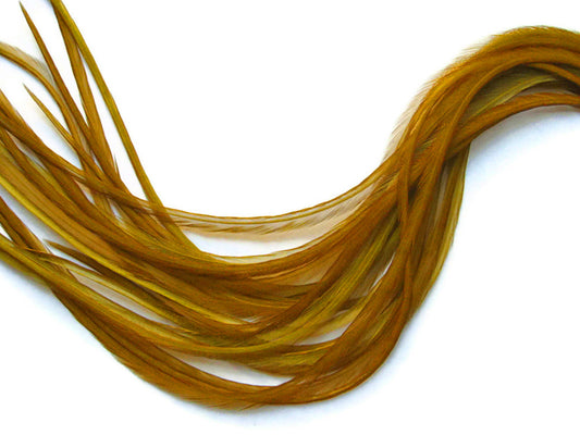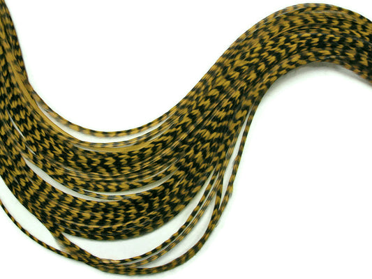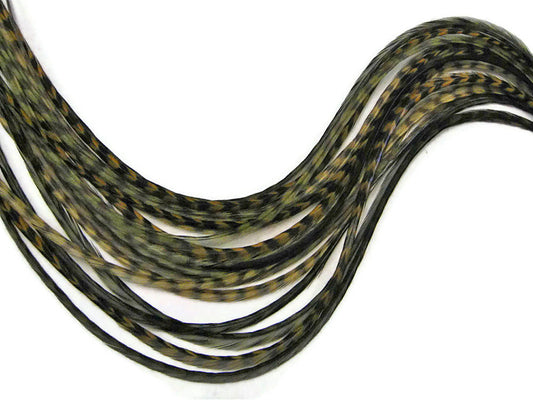 1 Piece - Golden Olive Thin Long Grizzly Rooster Hair Extension Feather & Silicon Bead