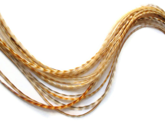 1 Piece - Tan Thin Long Grizzly Rooster Hair Extension Feather & Silicon Bead
