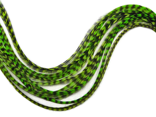1 Piece - Lime Green Thin Long Grizzly Rooster Hair Extension Feather & Silicon Bead