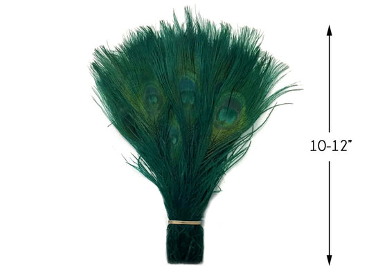 10 Pieces - 10-12" Turquoise Blue Dyed Over Natural Peacock Tail Eye Feathers