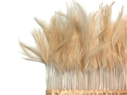 1 Yard - Beige Stripped Rooster Neck Hackle Eyelash Wholesale Feather Trim (Bulk)