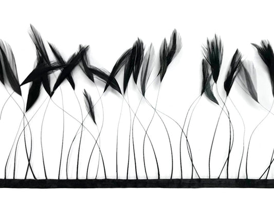 1 Yard - Black Stripped Rooster Neck Hackle Eyelash Wholesale Feather Trim (Bulk)