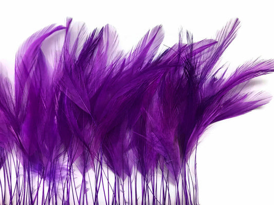1 Yard - Purple Stripped Rooster Neck Hackle Eyelash Wholesale Feather Trim (Bulk)
