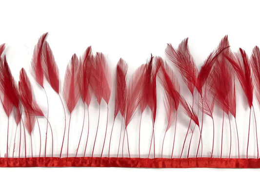 1 Yard - Red Stripped Coque Tail Feathers Wholesale Trim (Bulk)