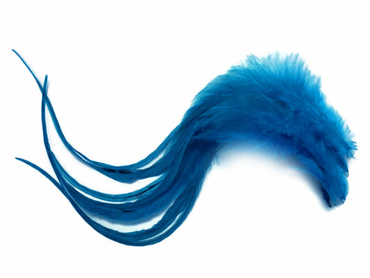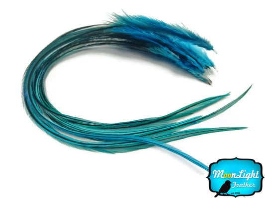 6 Pieces - Solid Turquoise Blue Thick Long Rooster Hair Extension Feathers