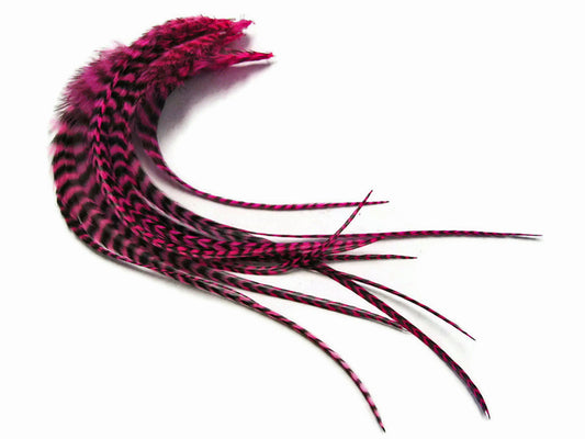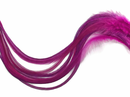6 Pieces - Magenta Thick Long Grizzly Rooster Hair Extension Feathers