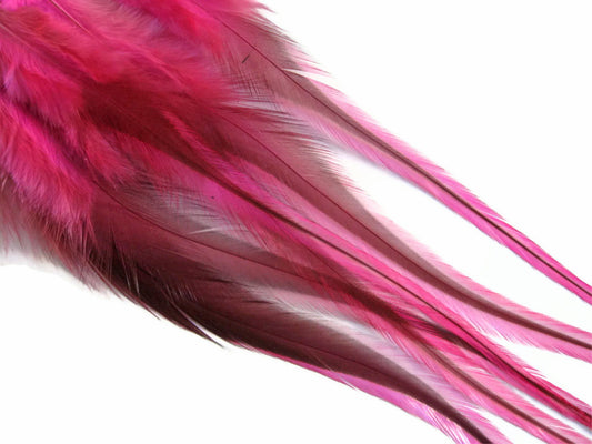 6 Pieces - Solid Magenta Thick Long Rooster Hair Extension Feathers