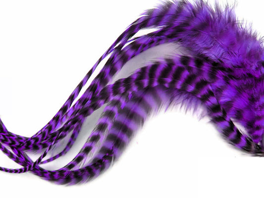 6 Pieces - Purple Thick Long Grizzly Rooster Hair Extension Feathers
