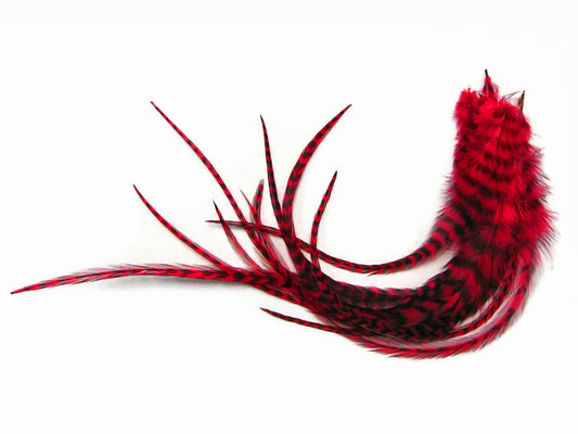 6 Pieces - Red Thick Long Grizzly Rooster Hair Extension Feathers