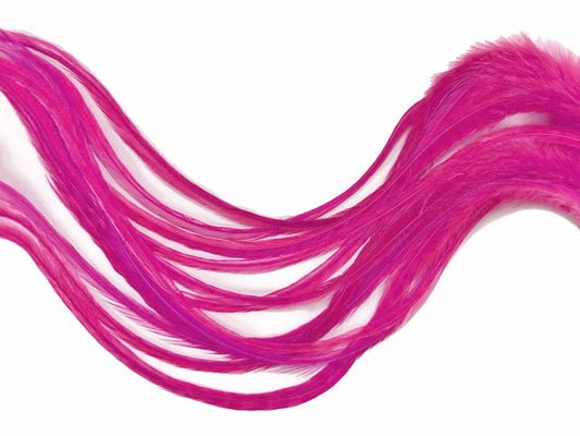 6 Pieces - Solid Hot Pink Thick Long Rooster Hair Extension Feathers