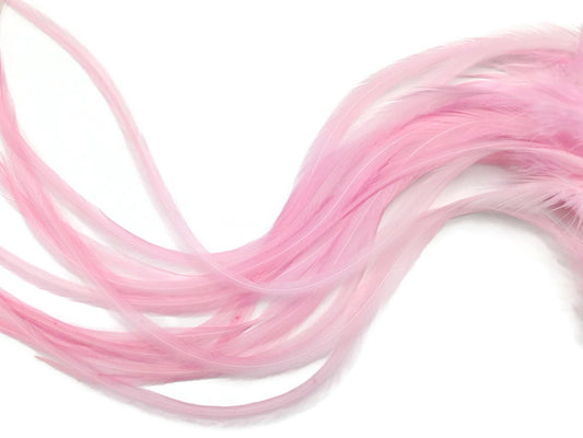 6 Pieces - Solid Light Pink Thick Long Rooster Hair Extension Feathers