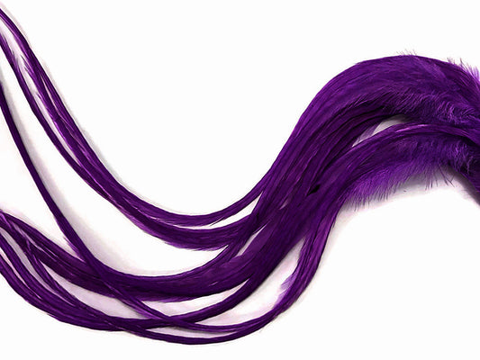 6 Pieces - Solid Purple Thick Long Rooster Hair Extension Feathers